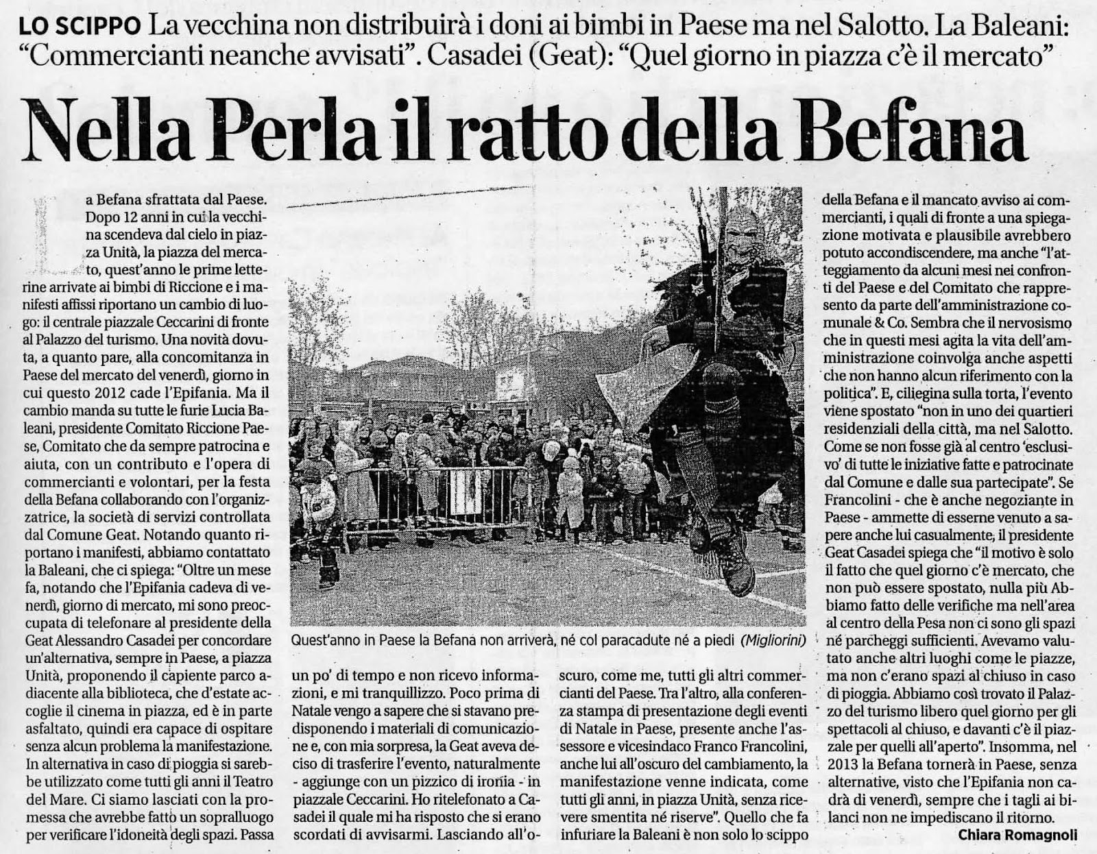 Il 2011 ha visto la nascita di numerosi comitati di dissenso verso la politica riccionese. Come l'articolo giustamente riposta é stato un anno di forte sensibilizzazione e partecipazione popolare. Peccato che la stampa ha anche spesso riportato esempi di notevole degrado e malgoverno, un esempio il trafiletto a lato dell'articolo qui sotto pubblicato. Questo lo stato attuale delle cose.